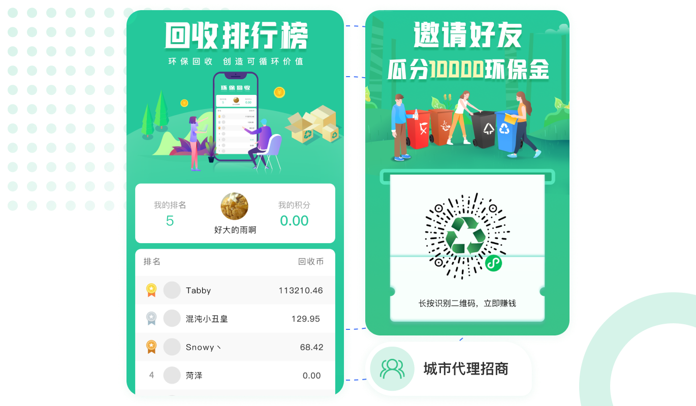 用戶出售垃圾廢品換錢的同時享受積分,積分可以兌換商品,增加用戶的使用黏性。